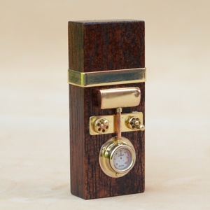 Cost:£85/-Sold - Named for the gunboat launched in 1870, The Blazer has a beech carcase and features a vertical tank, and a control wheel and 360° cock mounted to sculpted copper panel.