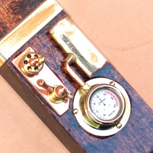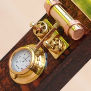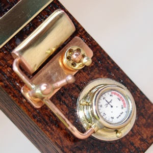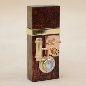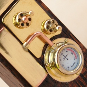 Cost:£85/-Sold - Named for the 16-gun floating battery launched in 1856, The Thunderbolt features a single vertical tank, and two control wheels mounted to a large sculpted brass panel.